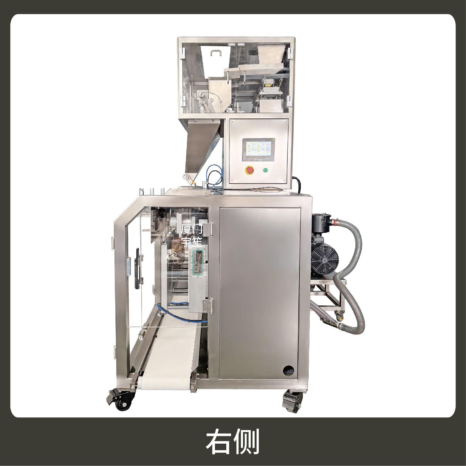 2、包裝流程全自動,可抽真空(真空度可達到-0.1Mpa)??筛鶕?jù)充填物料的性質(zhì)選配不同的下料結(jié)構(gòu)。